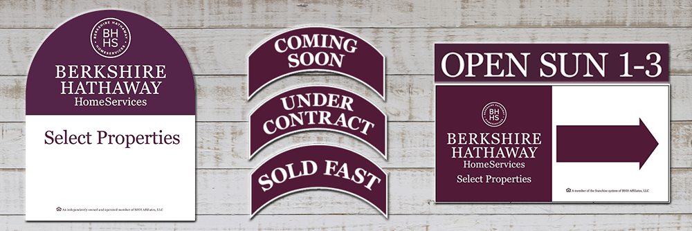 We'll admit a yard sign is pretty basic, but studies still show that it is 3rd largest source used by buyers when finding a home (right behind their real estate agent and the internet). Our Berkshire Hathaway HomeServices Select Properties yard sign, sign riders, directional arrows and even in-the-home feature cards will promote your home 24/7, directing buyers to the office or web for more information.